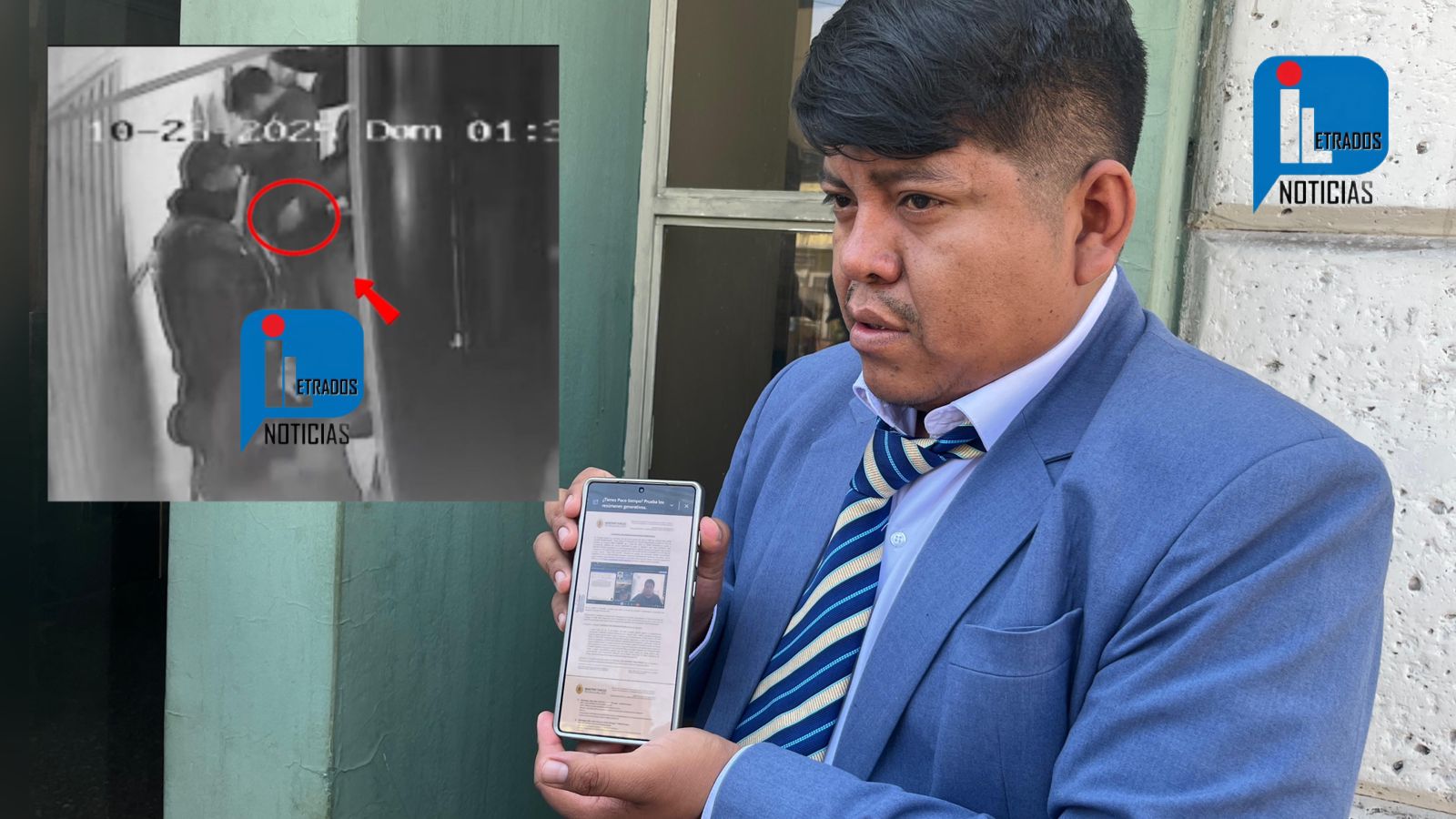 “Cuando él pone las manos sobre la pared, se observa que uno de los policías introduce su mano en el bolsillo izquierdo de la casaca del señor Sacachipana. Luego lo empujan más al fondo del baño. Mi patrocinado intenta salir, pero ambos policías lo reducen y lo sacan esposado, afirmando que se le hallaron 19 bolsas herméticas con droga. Esa sustancia fue plantada por el personal policial. Lo que dice en el acta no es lo que se ve en los vídeos”, declaró Mendoza desde los exteriores de la Divincri, en el Cercado de Arequipa.